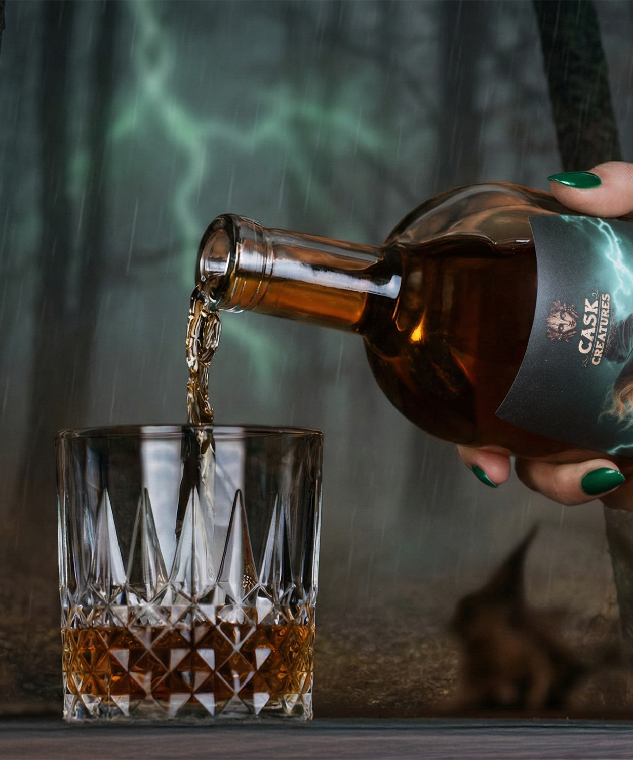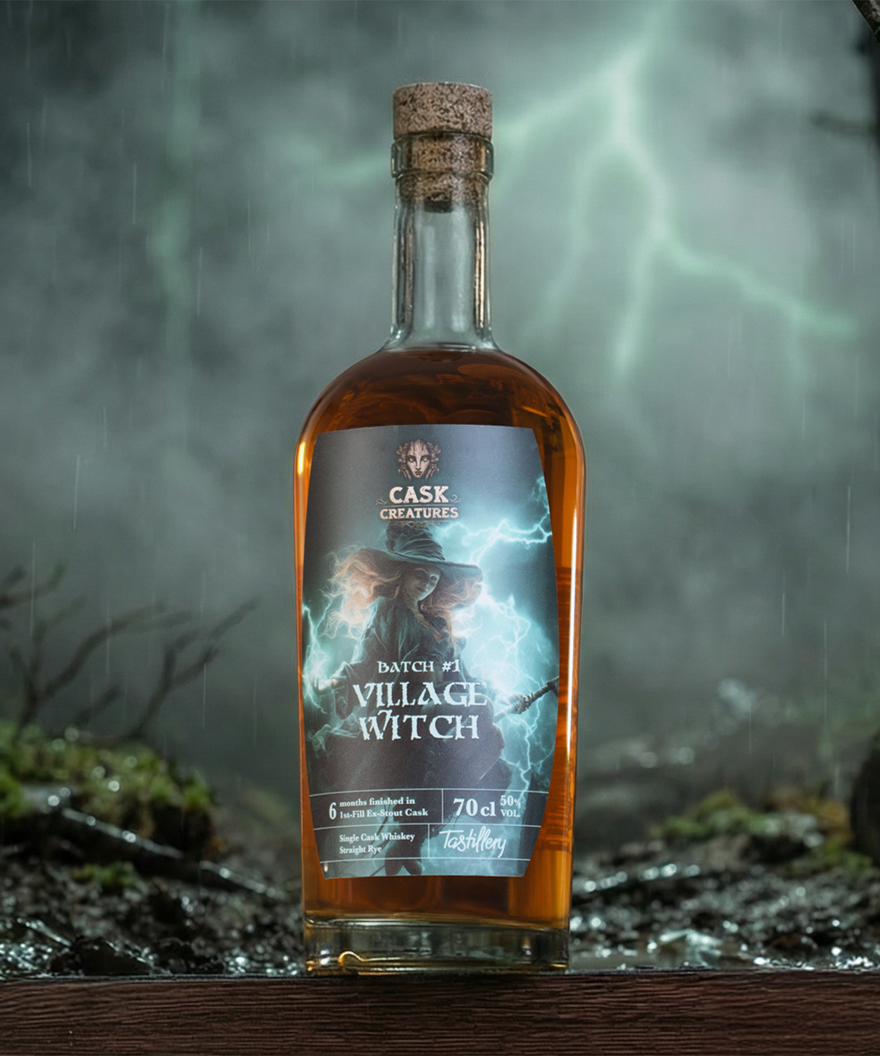 Seid mutig und entkorkt die Flasche. Keine flüssigen Krötenaugen, kein vergorener Schwefel. Vielmehr wird euch das Aroma eines in frischen Eichenfässern gereiften Straight Rye Whiskeys mit kräftigen 50 Volumenprozenten in die Nase steigen…doch was ist das? Woher kommt dieses intensive Aroma von geröstetem Malz, diese tiefwürzige Note und die satte, dunkle Farbe? Von der sechsmonatigen Reifung in einem kleinen, frisch entleeren Stoutfass. Rye und Stout – auf so eine verwegene Idee kann wohl nur eine Hexe kommen! Doch schon der erste Schluck wird euch verzaubern. Die wuchtige Würzigkeit des Roggens wird ummantelt von einer cremigen, karamellartigen Süße von dunklem Malz und geröstetem Getreide. Das feine, duftende Raucharoma des Stouts verleiht dem Straight Rye eine überraschende Komplexität, welche neben der Süße von Karamell und Ahornsirup auch die duftende Frische von kandierten Zitrusfrüchten präsentiert. All das vereint zu einer unwirklichen Süffigkeit, die das Glas wie von Zauberhand ein ums andere Mal leer werden lässt. Der Nachklang wird auch den letzten Zweifler am Dorftresen in Erstaunen versetzen, denn das Elixier der Village Witch hinterlässt einen Eindruck, der an einen Abend in eurem Lieblings-Pub erinnert: Die feine Bitterkeit von cremiger, dunkler Schokolade, fein mineralisch und malzig duftend wie ein frisch geleertes Stoutglas und so tiefgründig süß wie der Tumbler mit eurem liebsten Whisky direkt daneben, der darauf wartet, zum laut gebrüllten „Cheers“ erhoben zu werden.